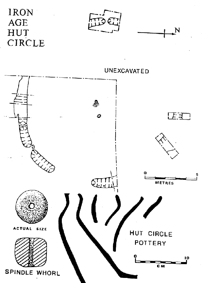 One ditch passes within 20 metres of the Iron Age hut circle but no pottery